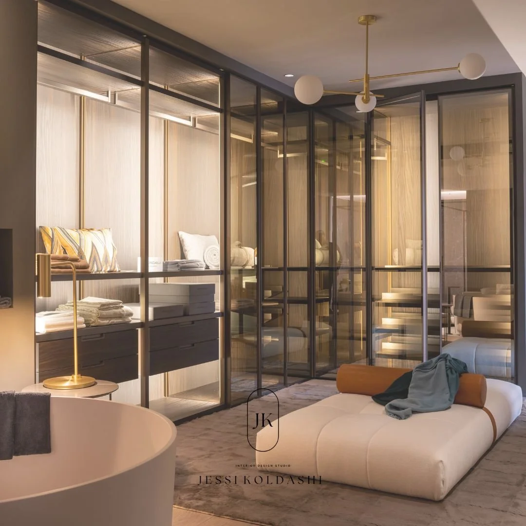 This interior design project for a luxury suite in Milan was conceived to blend an oriental aesthetic with the refined, contemporary style of modern Milan. The design features the use of gold in a subtle yet prestigious manner, creating a sense of timeless elegance throughout the space. Material selection played a key role: high-quality fabrics such as silks and brocades were paired with premium Italian finishes and textures. The suite integrates the best of Italy’s most renowned brands, highlighting craftsmanship and quality.